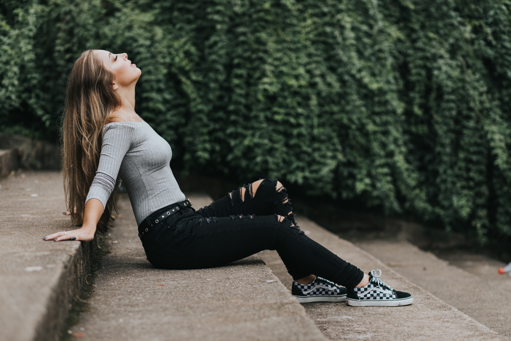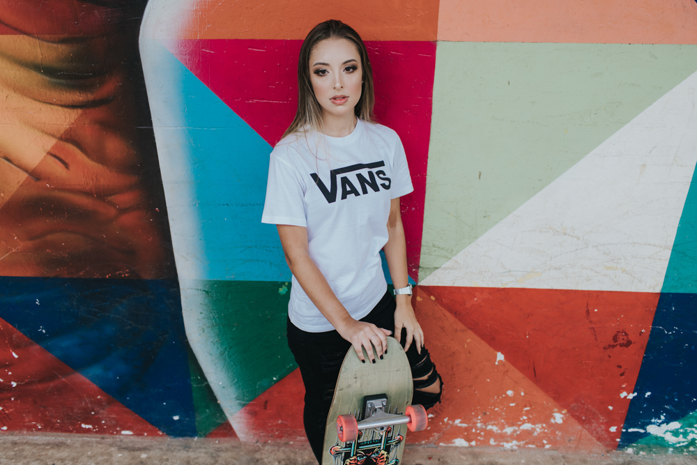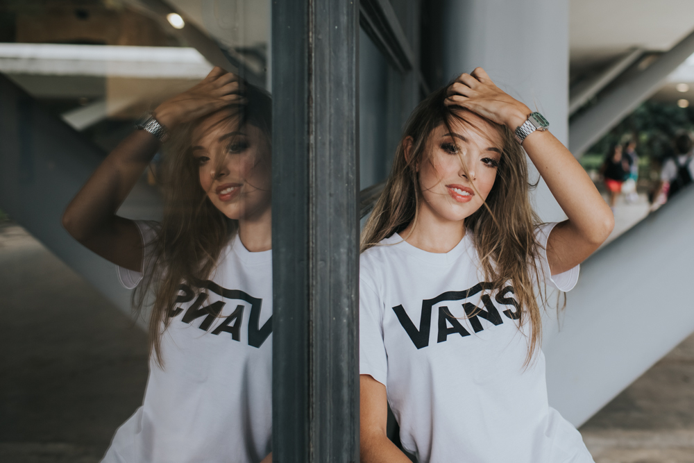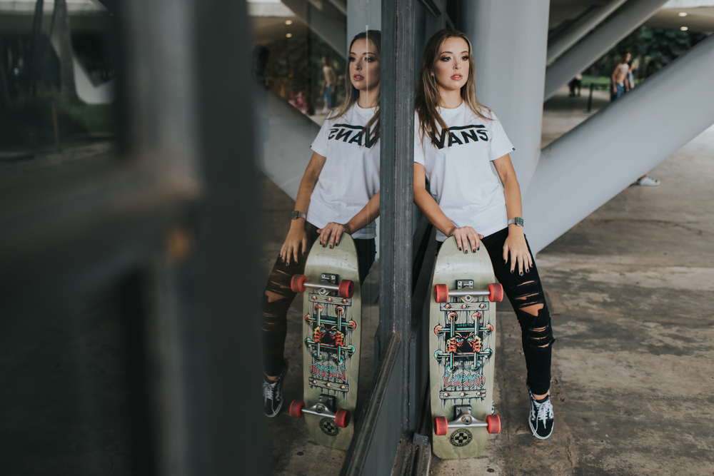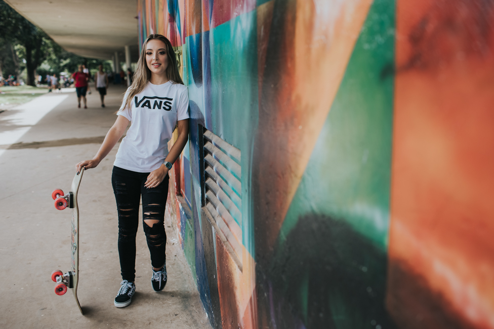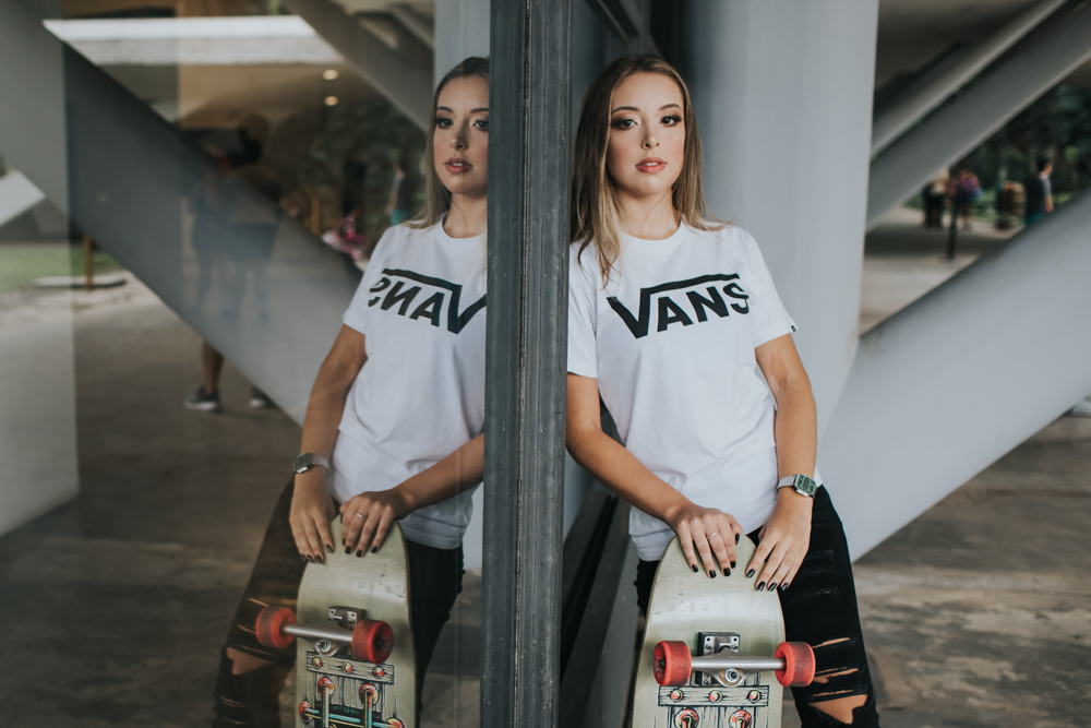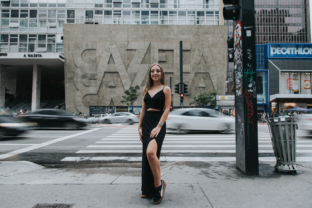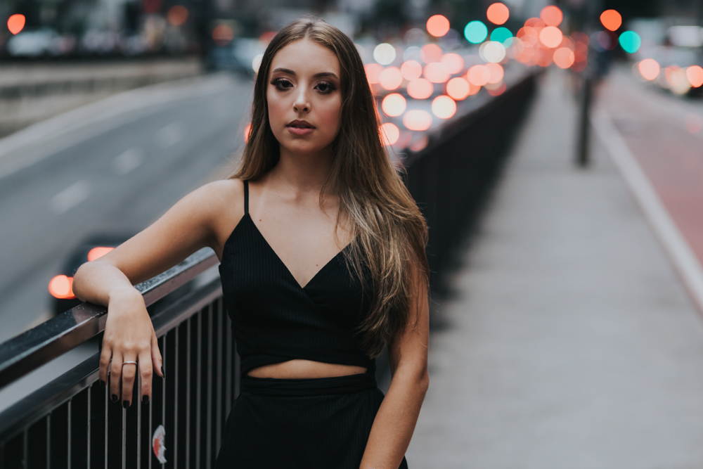 Luiza que estava prestes a completar seus 15 anos e quis fazer um registro urbano para marcar essa data.