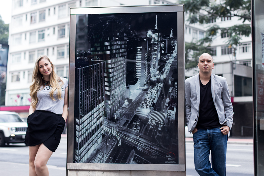 Marcela e Bruno optaram por eternizar o momento pré casamento deles num local que lembrasse a cidade de São Paulo uma vez que estavam de mudança para Milão. Para essa recordação não existe um lugar que represente melhor São Paulo que a Av Paulista. Depois passamos no Beco do Batman para conseguir imagens mais coloridas. O ensaio ficou incrível. Particularmente sou muito fã desse cenário, mas o entrosamento e a descontração desse casal, realmente foi algo surpreendente. As imagens dizem tudo! Confiram!